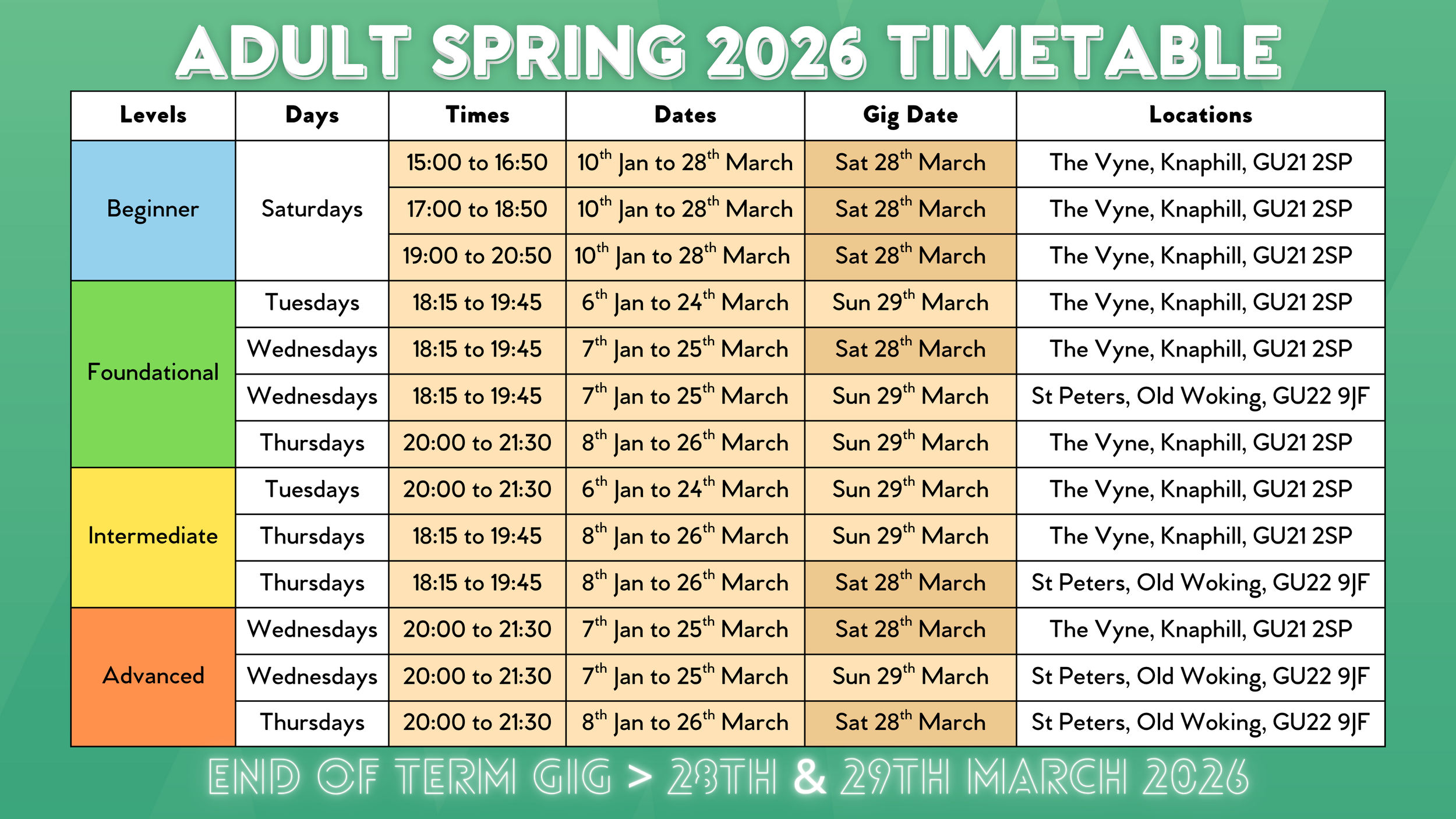 End of Term Gig > Saturday 28th November 2026 (Beginner) at The Vyne, Knaphill, Woking GU21 2SP